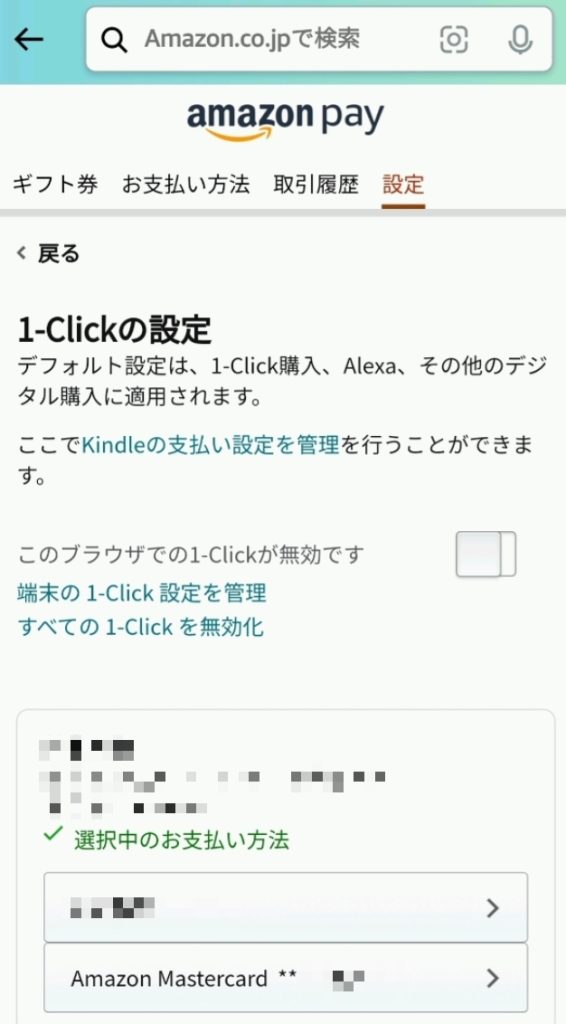 続いて、支払い&住所の項目にある「1-Click設定の管理」を押します。