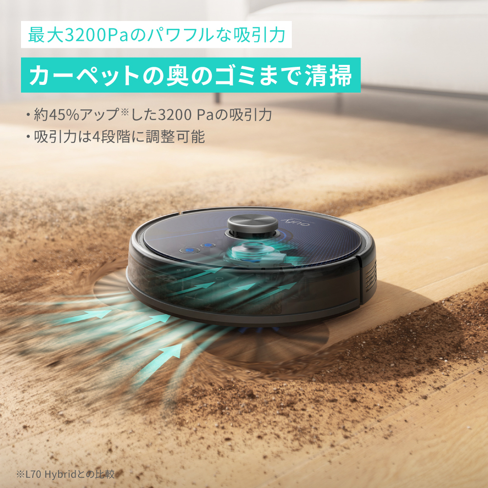 前モデルの約45%アップした吸引力(最大3200Pa)も魅力の一つ!!