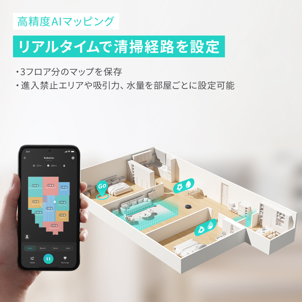 部屋ごとの吸引力を選べたり、水拭きや進入禁止エリアなどのカスタム設定が簡単かつ見やすいです!!