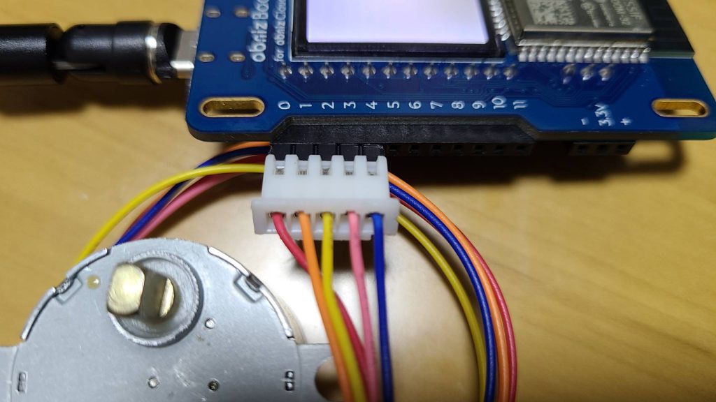ステッピングモーターのobniz本体への配線は写真と通りです!!