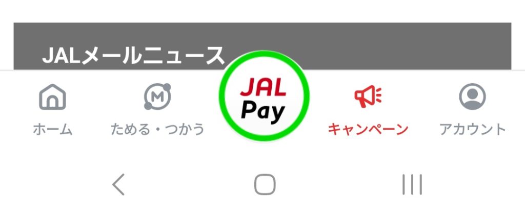 1.アプリを開き、下部のJAL PAYボタンを押す