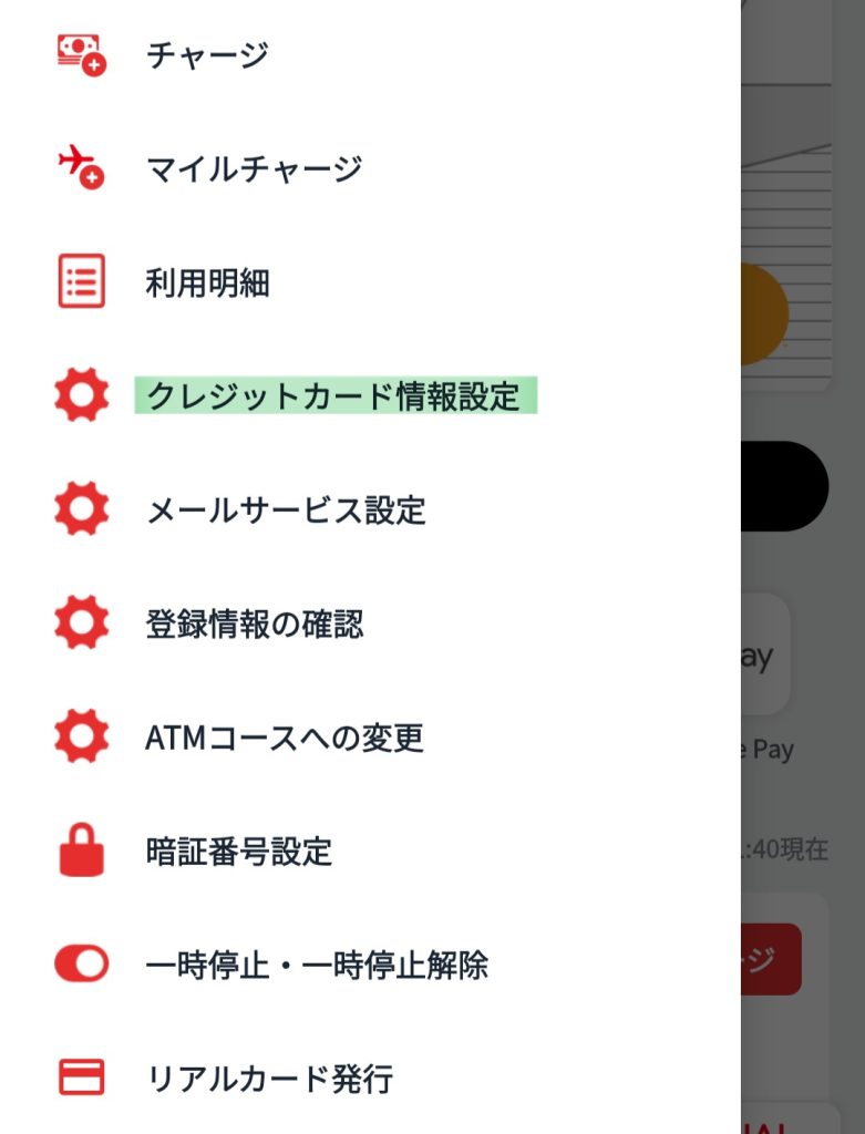 JAL PAYのチャージクレジットカード登録方法