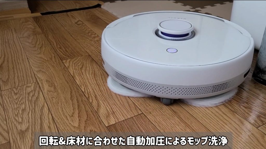 モップ洗浄時にはただ圧力をかけて清掃するだけでなく、床材に合わせて圧力を自動調整する機能が搭載されています!!