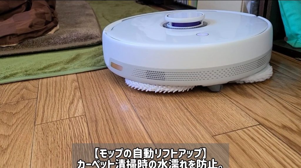 ロボット掃除機がカーペットやラグであることを認識した場合、濡らさないようにモップを自動でリフトアップする機能が搭載されています!!
