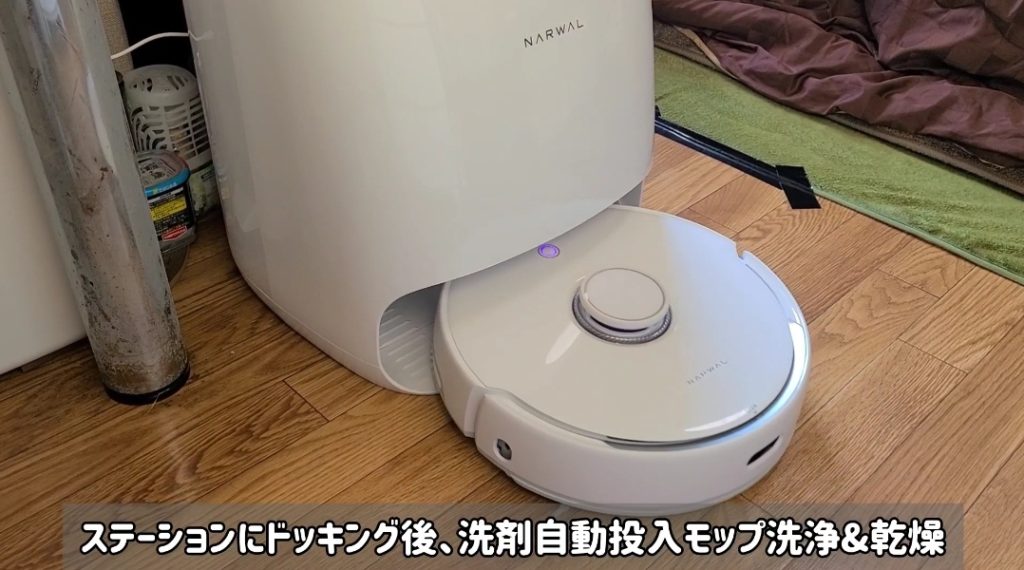 Narwalさんの十八番であるモップの自動洗浄はもちろん、温風による乾燥機能が搭載されています。