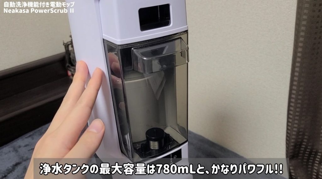 浄水タンク容量は780ml、汚水タンク容量は700ml、リチウムイオンバッテリーは3000mAhとどれも大容量!!