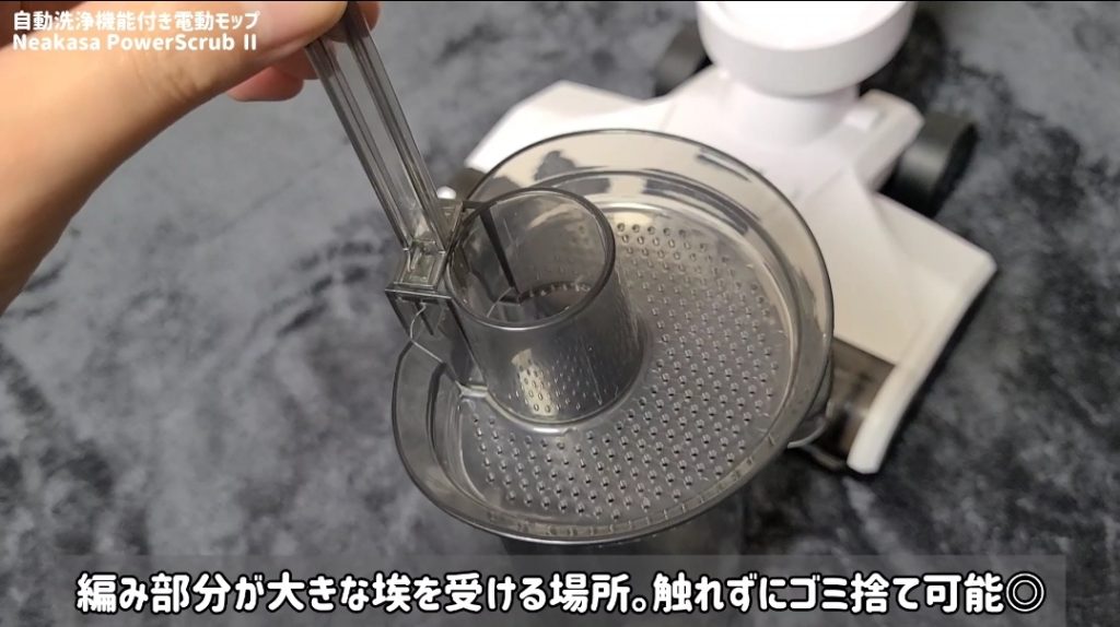 汚水タンクに溜まった埃や洗浄液は、固形ゴミと汚水に分離することができるため、ゴミ捨ての際のストレスも最小限で済みます!!