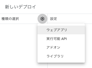 「種類の選択(歯車部分)」で「ウェブアプリ」を選択する。