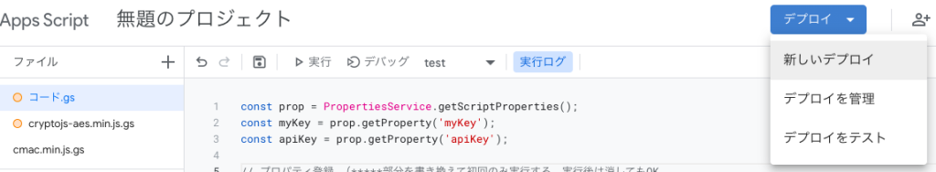 「デプロイ」 から 「新しいデプロイ」を選択する。