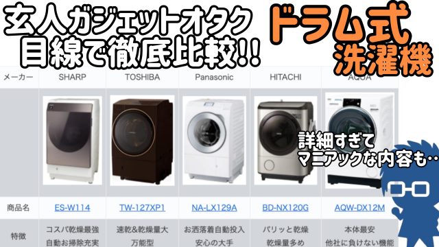 【2025年版】筆者が実際にドラム式洗濯機を購入するにあたって検討した、お勧め「SHARP」「TOSHIBA」「Panasonic」「HITACHI」「AQUA」をガジェットオタクが紹介します!!